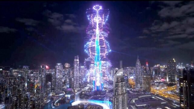 Los Emiratos Árabes Unidos comienzan el nuevo año con un brillante espectáculo de fuegos artificiales para recibir el nuevo año.
