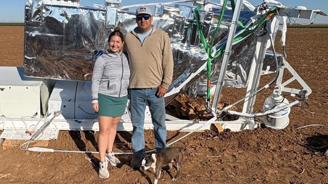 Se sorprendió aún más al ver lo que realmente aterrizó en el campo de trigo de su vecino: una caja de herramientas científicas sobre un vehículo deportivo de montaña sujeto a un gran paracaídas con una pegatina de la NASA. Llamó a la oficina del sheriff local y se enteró de que la NASA en realidad estaba buscando una herramienta que se había perdido.